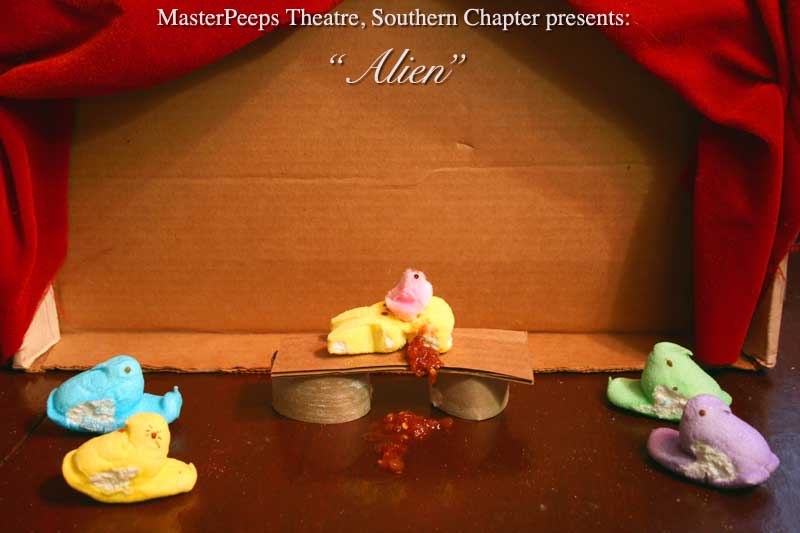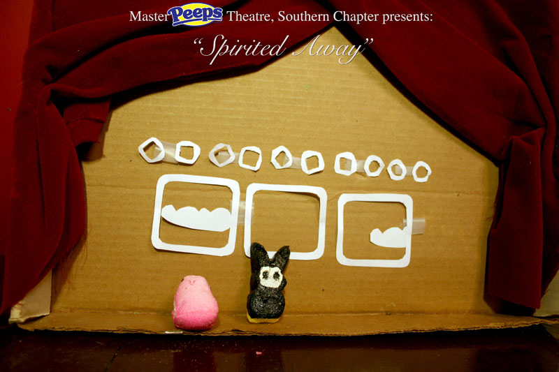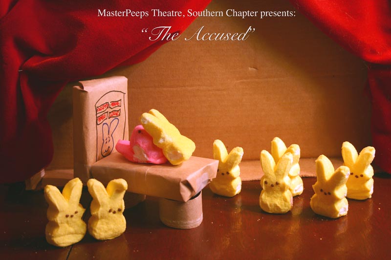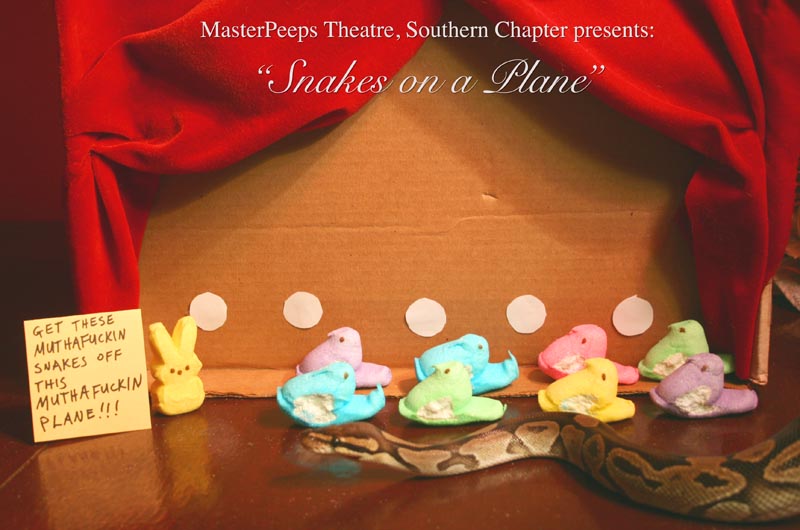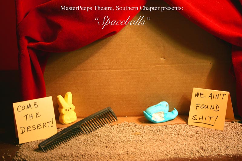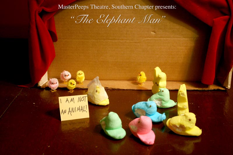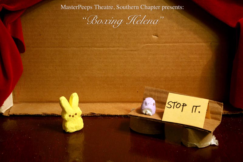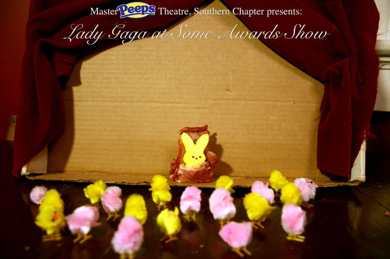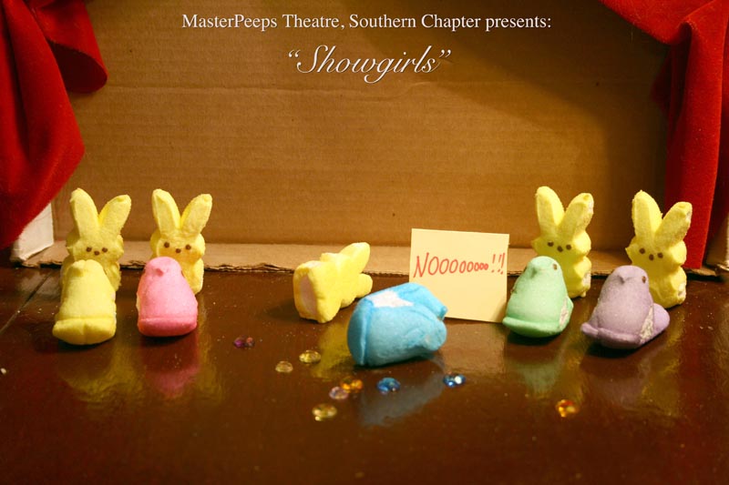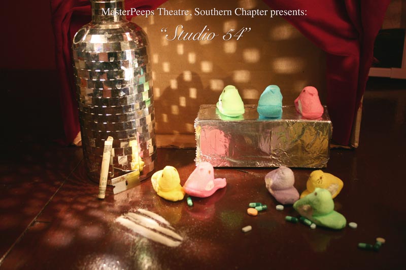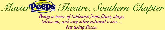 MasterPeeps Theatre, Southern Chapter was inspired by Lisa McColgan. Aw hell. Inspired? More like I totally stole her idea. She works at a theatre company in Boston and her MasterPeeps tableaux are the epitome of minimalist genius. The southern chapter can only aspire to the Noreast parent companys wit and brilliance in execution. le Marquis Déjà Dû, ©2011-2012, New Orleans, La. |