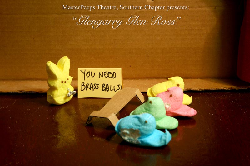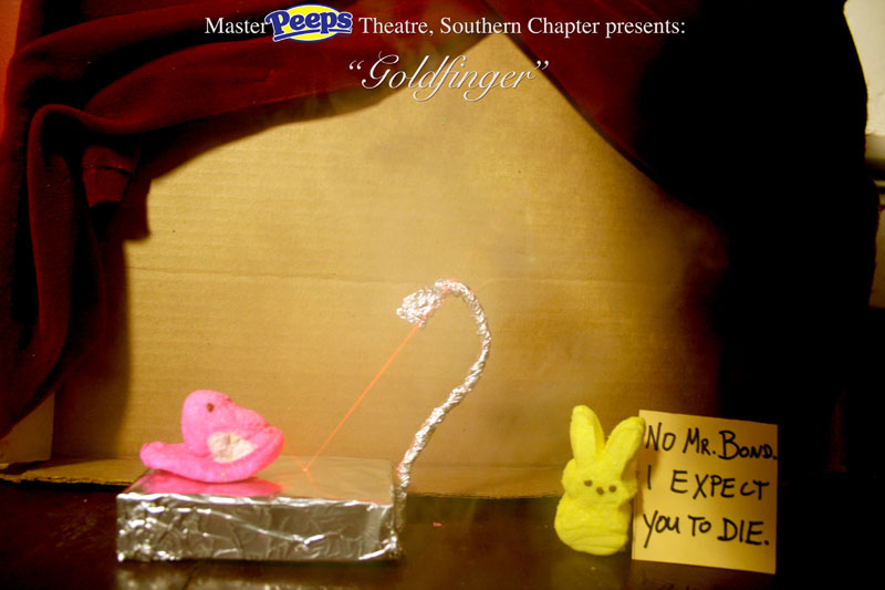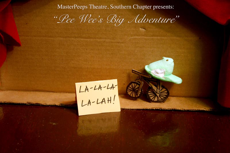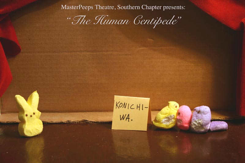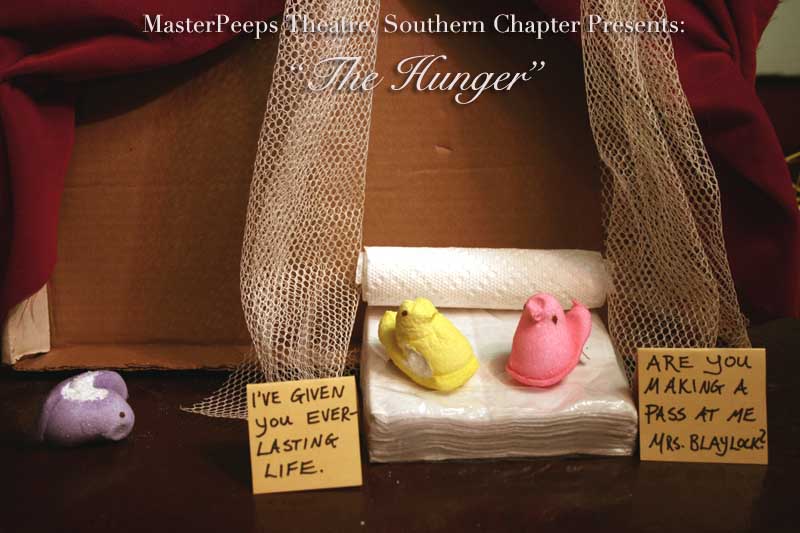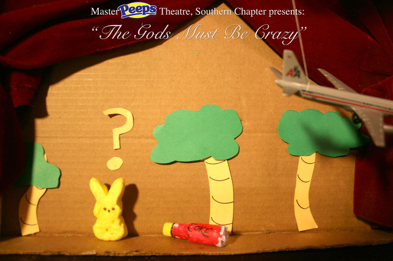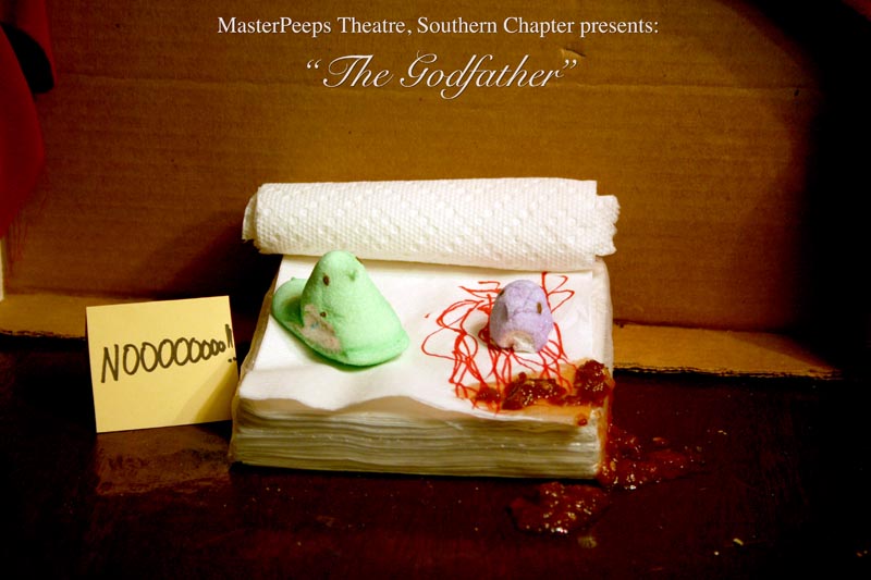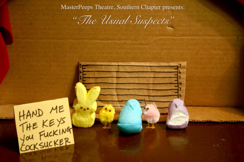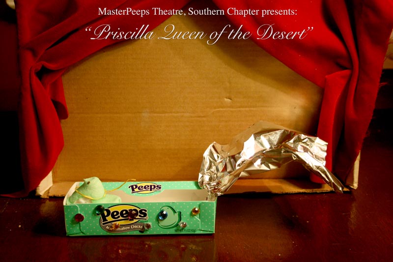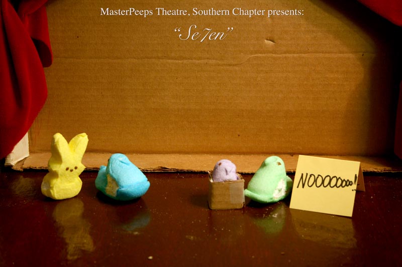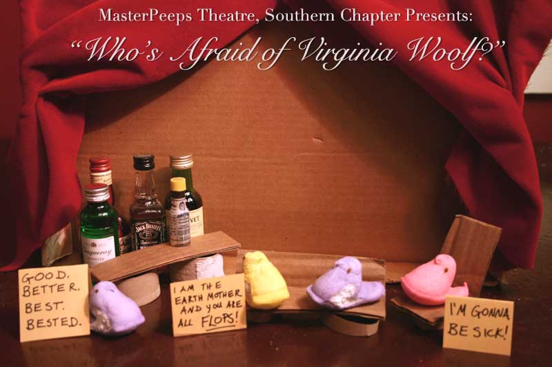MasterPeeps Theatre, Southern Chapter was inspired by Lisa McColgan. Aw hell. Inspired? More like I totally stole her idea. She works at a theatre company in Boston and her MasterPeeps tableaux are the epitome of minimalist genius. The southern chapter can only aspire to the Noreast parent companys wit and brilliance in execution. le Marquis Déjà Dû, ©2011-2012, New Orleans, La. |