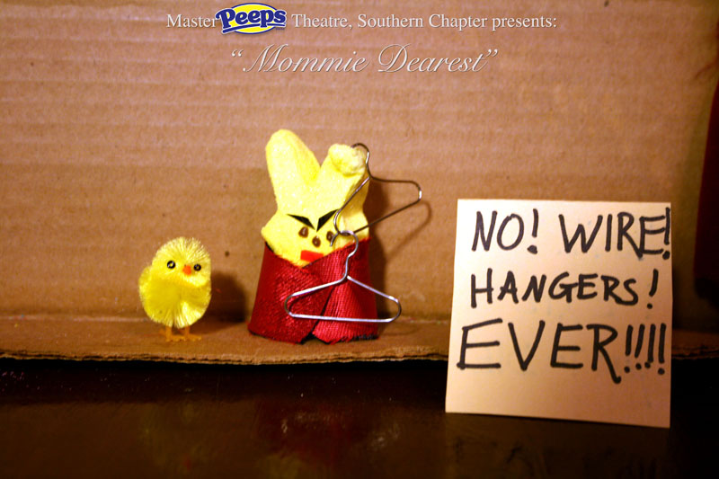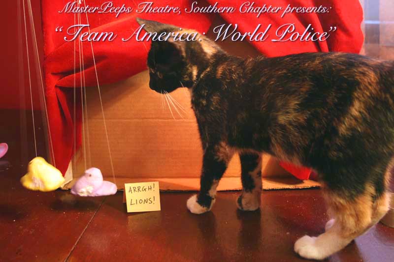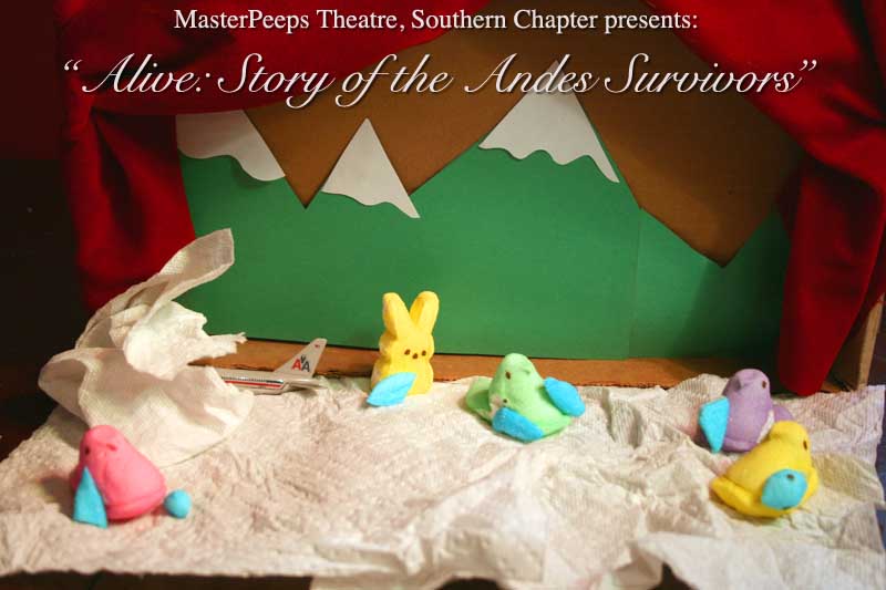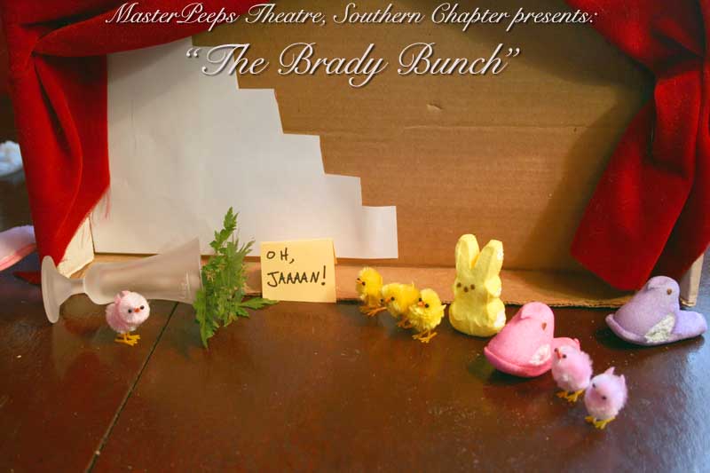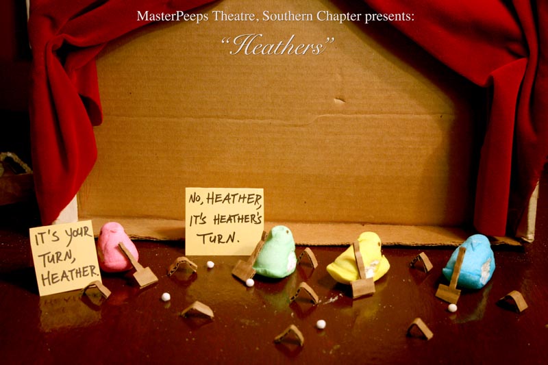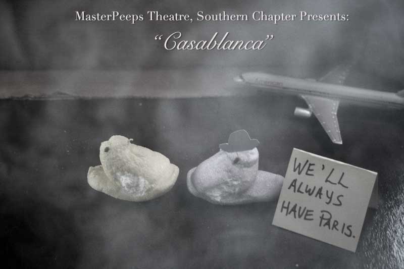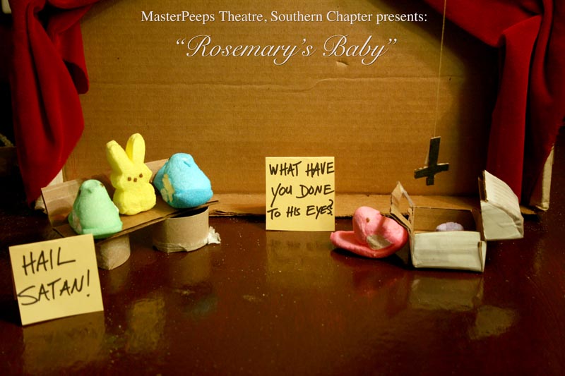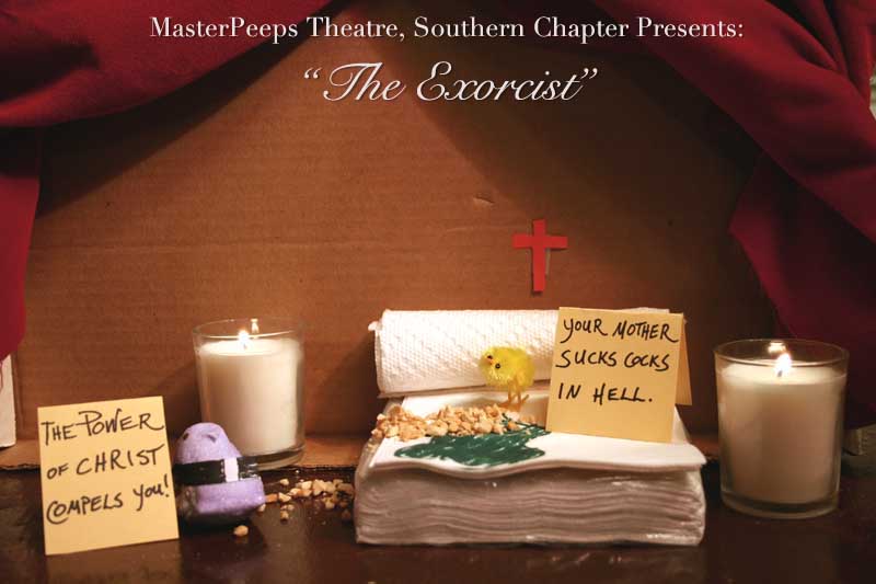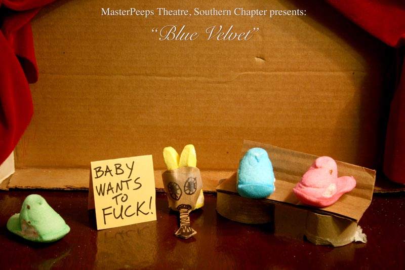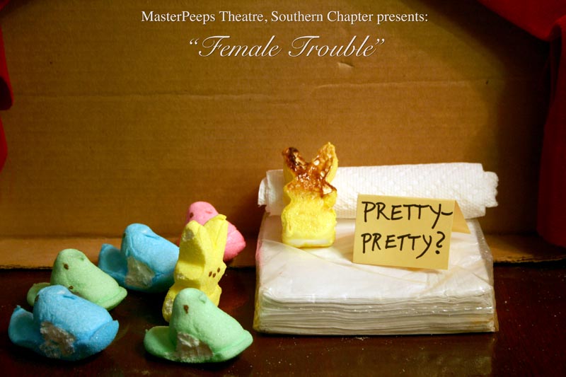 MasterPeeps Theatre, Southern Chapter was inspired by Lisa McColgan. Aw hell. Inspired? More like I totally stole her idea. She works at a theatre company in Boston and her MasterPeeps tableaux are the epitome of minimalist genius. The southern chapter can only aspire to the Noreast parent companys wit and brilliance in execution. le Marquis Déjà Dû, ©2011-2012, New Orleans, La. |